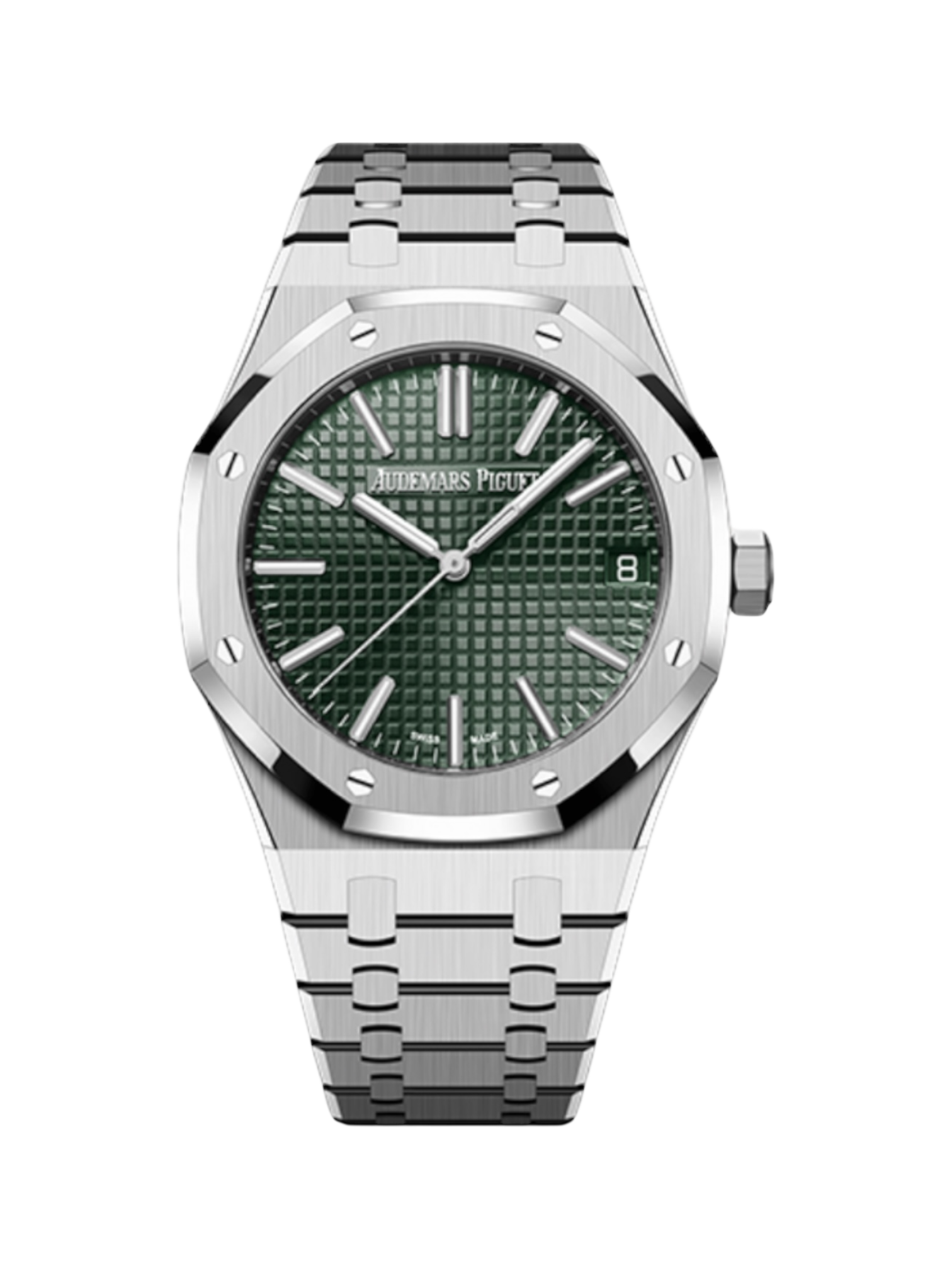 Cette Audemars Piguet Royal Oak Automatique 15510st 41 mm en acier inoxydable intègre les nouvelles adaptations ergonomiques de la collection ainsi qu’un cadran « Grande Tapisserie » décliné dans une nouvelle teinte kaki.